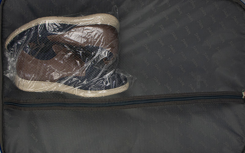 - Coloca tus calzados en el compartimiento de mallas de tu maleta.